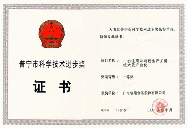 普寧市科技進(jìn)步獎一等獎